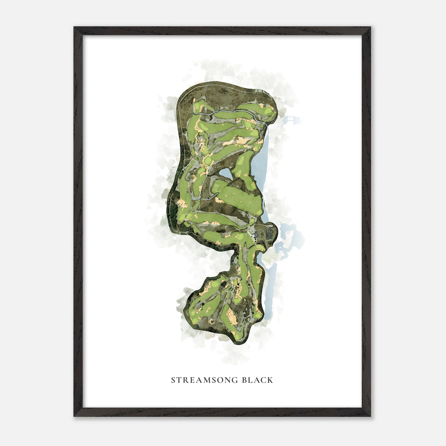 Capturing the essence of your golfing experiences, this vibrant print showcases the Streamsong Black in stunning watercolors. Whether you're reliving your greatest shots or eagerly anticipating the next game, this map is a vivid reminder of those joyous moments on the course. Its straightforward yet captivating design makes it a perfect addition to any space, adding a personal and resonant touch for every golfer.