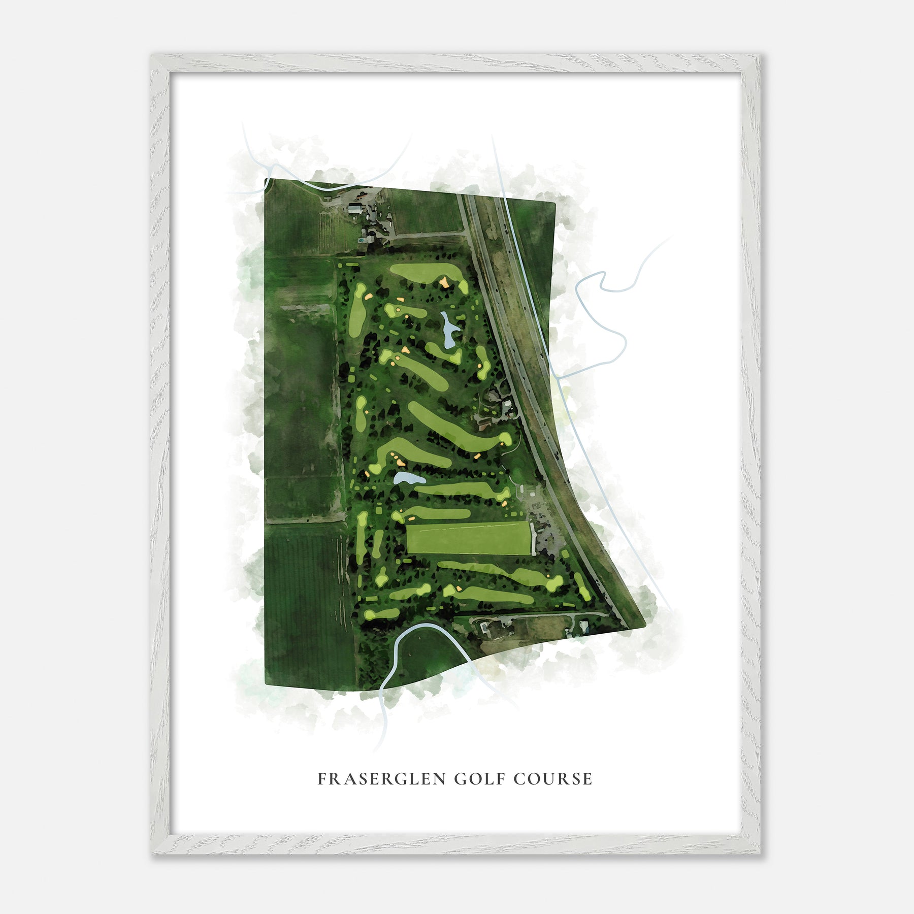 Capturing the essence of your golfing experiences, this vibrant print showcases the Fraserglen Golf Course in stunning watercolors. Whether you're reliving your greatest shots or eagerly anticipating the next game, this map is a vivid reminder of those joyous moments on the course. Its straightforward yet captivating design makes it a perfect addition to any space, adding a personal and resonant touch for every golfer.